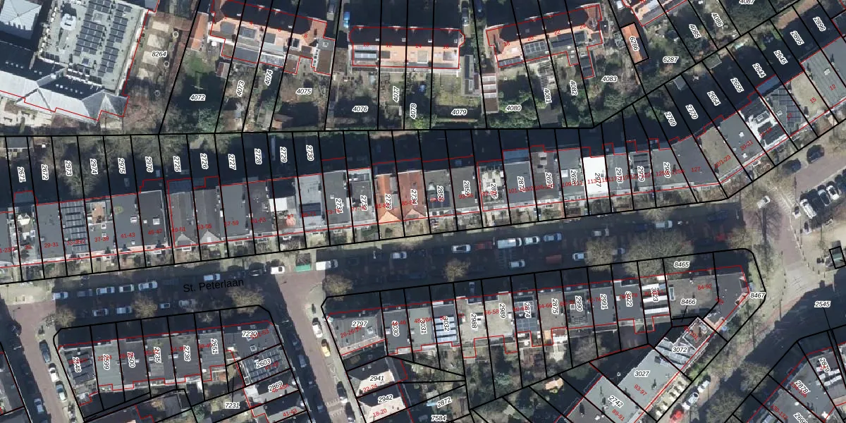 St. Peterlaan 87 is gelegen op kadastraal perceel AHM01N2734. Deze kadastrale aanduiding is uniek en wordt gebruikt door het Kadaster om eigendomsrechten en andere zakelijke rechten vast te leggen. Het perceel maakt onderdeel uit van de kadastrale gemeente Arnhem.