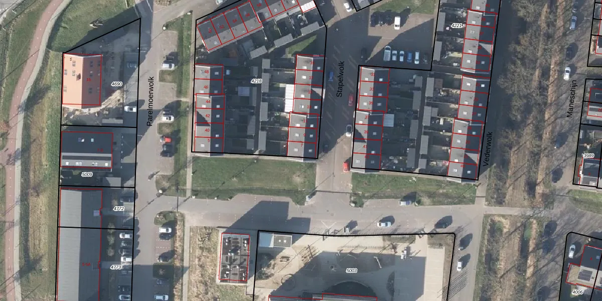 Het perceel waarop Stapelwolk 7 staat heeft een oppervlakte van 2245 m². Dit is een zeer groot perceel. De perceeloppervlakte wordt geregistreerd door het Kadaster. Gedetailleerde informatie over de maten van dit perceel kunt u vinden in het rapport Kadastrale kaart met maatvoering van Stapelwolk 7.