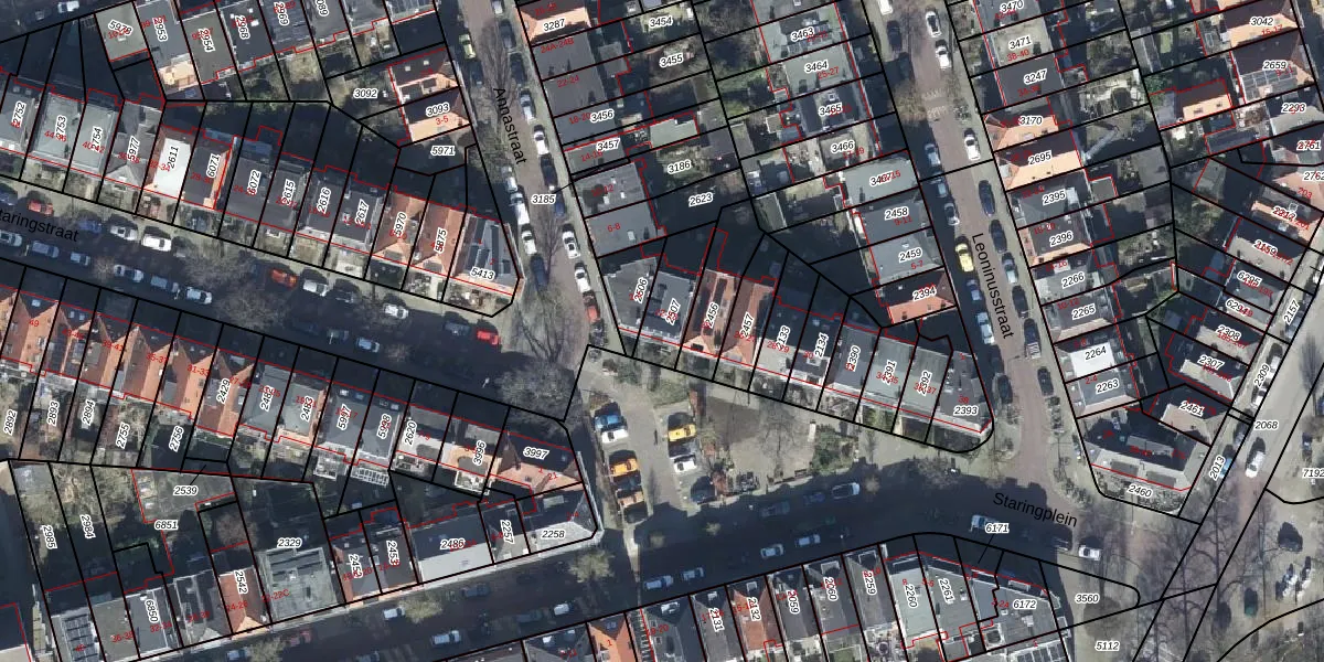 Het perceel waarop Staringplein 22 staat heeft een oppervlakte van 145 m². Dit is een middelgroot perceel. De perceeloppervlakte wordt geregistreerd door het Kadaster. Gedetailleerde informatie over de maten van dit perceel kunt u vinden in het rapport Kadastrale kaart met maatvoering van Staringplein 22.