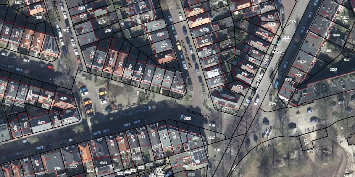 Het perceel waarop Staringplein 38 staat heeft een oppervlakte van 130 m². Dit is een middelgroot perceel. De perceeloppervlakte wordt geregistreerd door het Kadaster. Gedetailleerde informatie over de maten van dit perceel kunt u vinden in het rapport Kadastrale kaart met maatvoering van Staringplein 38.