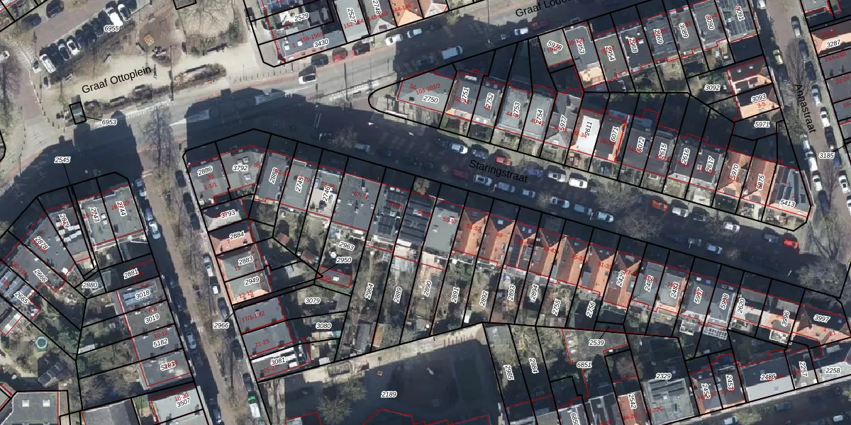 Het perceel waarop Staringstraat 61 staat heeft een oppervlakte van 272 m². Dit is een middelgroot perceel. De perceeloppervlakte wordt geregistreerd door het Kadaster. Gedetailleerde informatie over de maten van dit perceel kunt u vinden in het rapport Kadastrale kaart met maatvoering van Staringstraat 61.