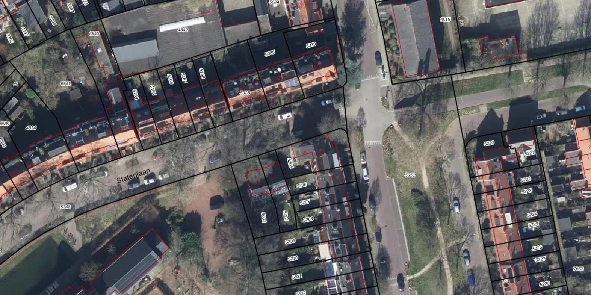 Statenlaan 18 is gelegen op kadastraal perceel AHM01Q5205. Deze kadastrale aanduiding is uniek en wordt gebruikt door het Kadaster om eigendomsrechten en andere zakelijke rechten vast te leggen. Het perceel maakt onderdeel uit van de kadastrale gemeente Arnhem.