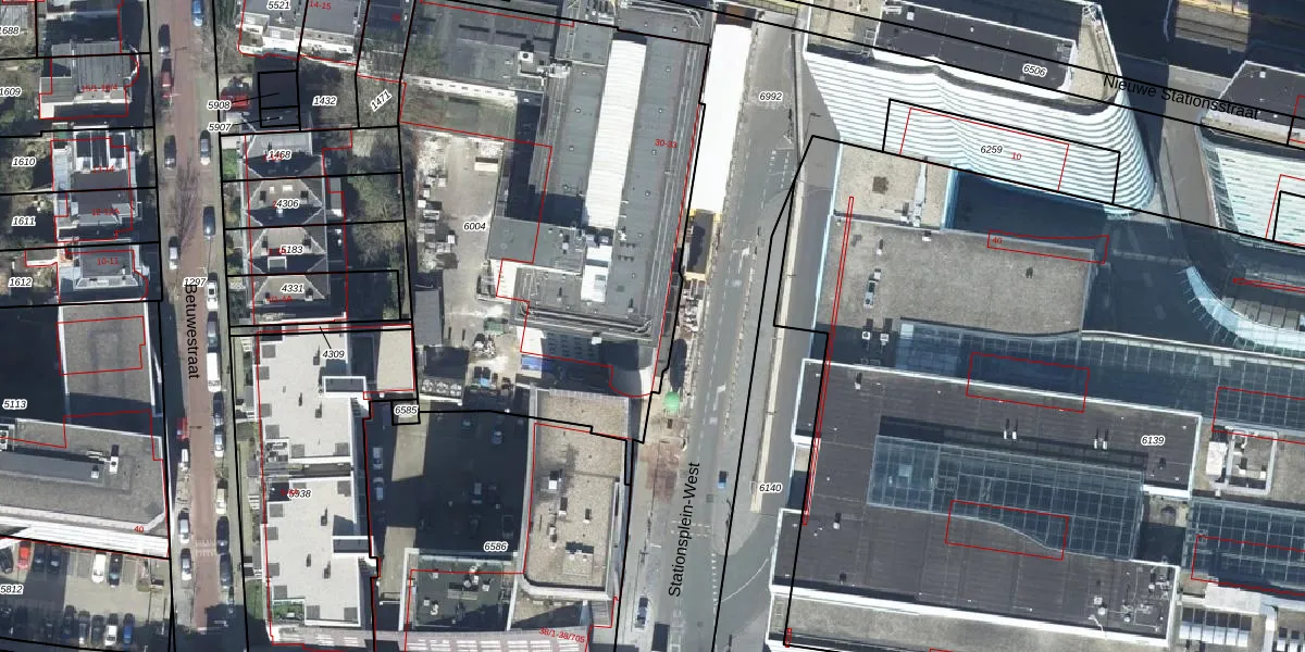 Het perceel waarop Stationsplein-West 30 staat heeft een oppervlakte van 2640 m². Dit is een zeer groot perceel. De perceeloppervlakte wordt geregistreerd door het Kadaster. Gedetailleerde informatie over de maten van dit perceel kunt u vinden in het rapport Kadastrale kaart met maatvoering van Stationsplein-West 30.
