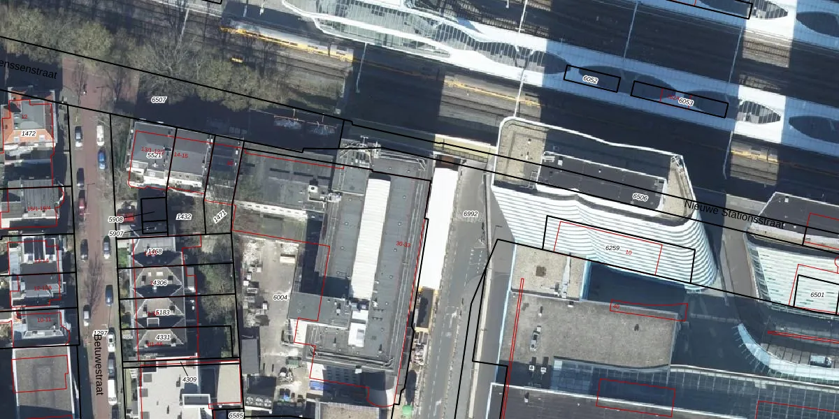 Het perceel waarop Stationsplein-West 33 staat heeft een oppervlakte van 2640 m². Dit is een zeer groot perceel. De perceeloppervlakte wordt geregistreerd door het Kadaster. Gedetailleerde informatie over de maten van dit perceel kunt u vinden in het rapport Kadastrale kaart met maatvoering van Stationsplein-West 33.