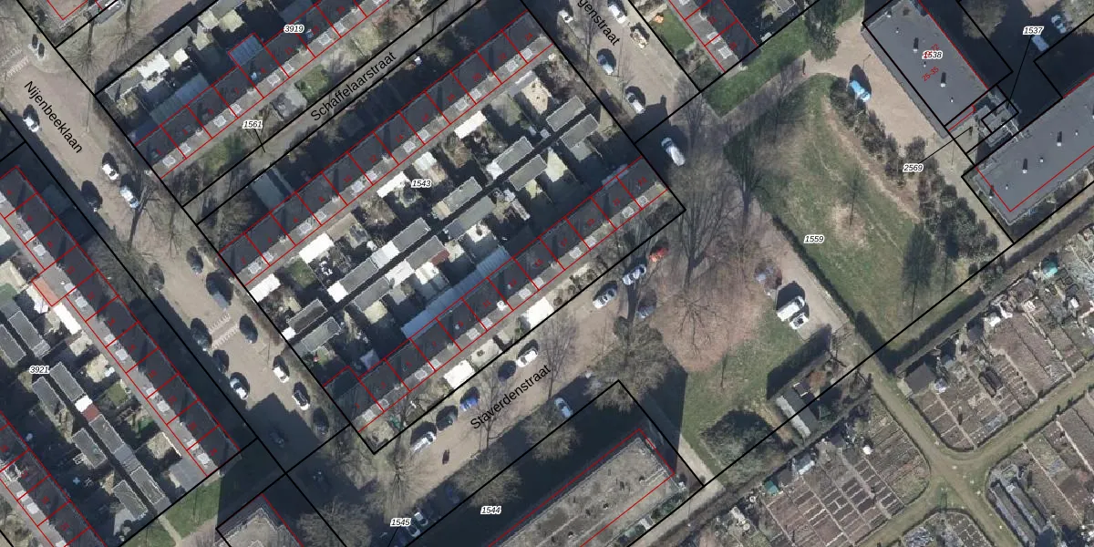 Het perceel waarop Staverdenstraat 15 staat heeft een oppervlakte van 3843 m². Dit is een zeer groot perceel. De perceeloppervlakte wordt geregistreerd door het Kadaster. Gedetailleerde informatie over de maten van dit perceel kunt u vinden in het rapport Kadastrale kaart met maatvoering van Staverdenstraat 15.