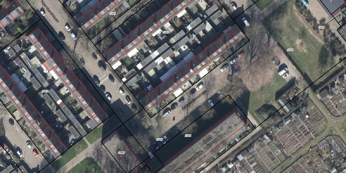 Het perceel waarop Staverdenstraat 7 staat heeft een oppervlakte van 3843 m². Dit is een zeer groot perceel. De perceeloppervlakte wordt geregistreerd door het Kadaster. Gedetailleerde informatie over de maten van dit perceel kunt u vinden in het rapport Kadastrale kaart met maatvoering van Staverdenstraat 7.