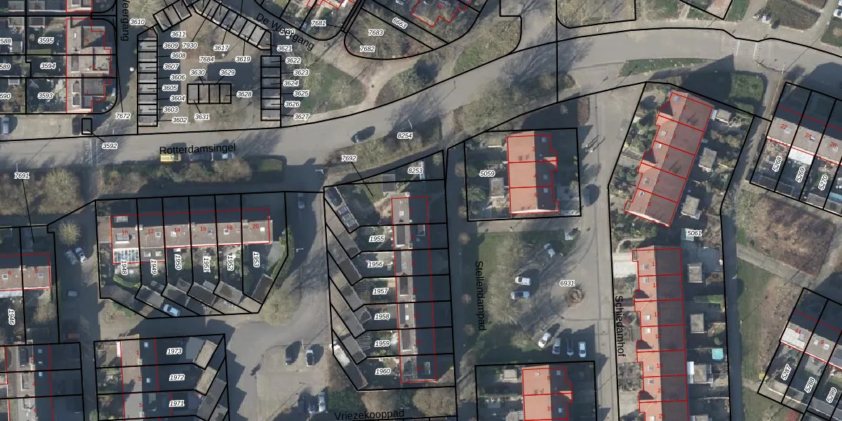 Gebruik de zoekbalk of klik op een perceel voor informatie over de adressen binnen dit perceel.