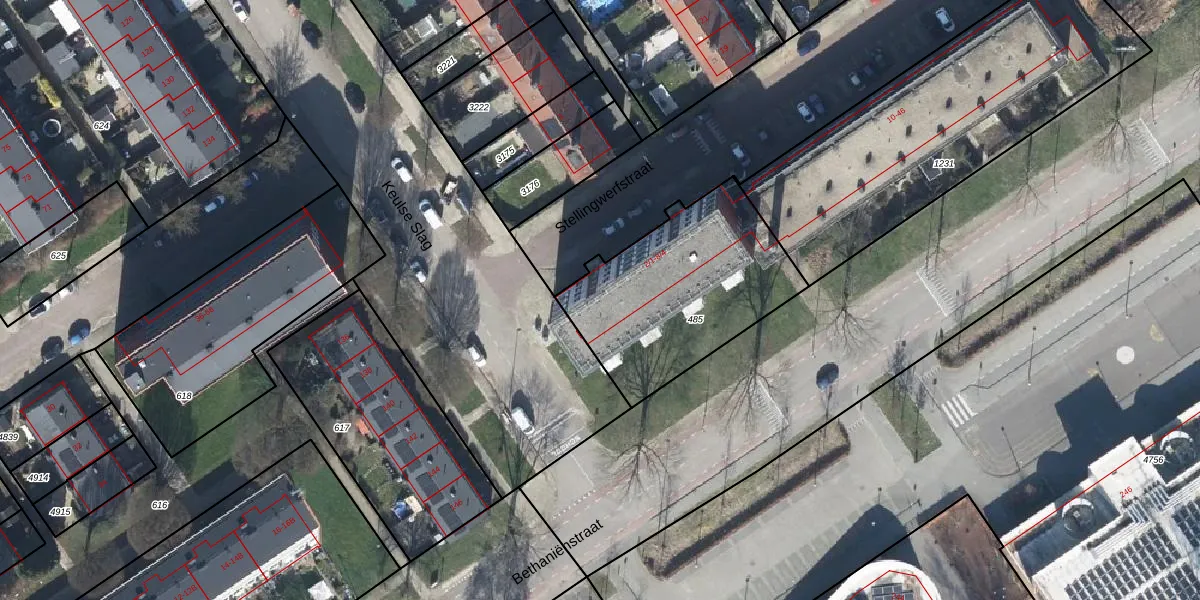 Stellingwerfstraat 2-3 is gelegen op kadastraal perceel AHM01T485. Deze kadastrale aanduiding is uniek en wordt gebruikt door het Kadaster om eigendomsrechten en andere zakelijke rechten vast te leggen. Het perceel maakt onderdeel uit van de kadastrale gemeente Arnhem.