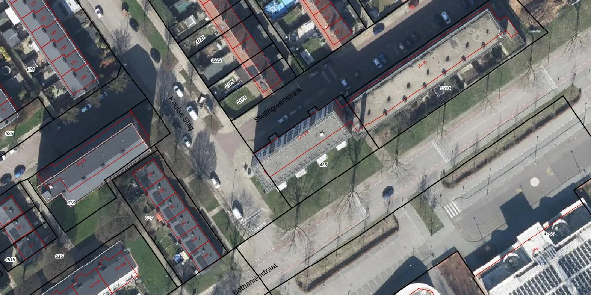 Het perceel waarop Stellingwerfstraat 4-4 staat heeft een oppervlakte van 818 m². Dit is een groot perceel. De perceeloppervlakte wordt geregistreerd door het Kadaster. Gedetailleerde informatie over de maten van dit perceel kunt u vinden in het rapport Kadastrale kaart met maatvoering van Stellingwerfstraat 4-4.