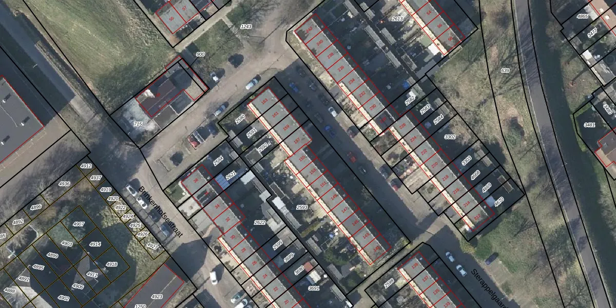 Sterappelgaard 155 is gelegen op kadastraal perceel AHM01W2593. Deze kadastrale aanduiding is uniek en wordt gebruikt door het Kadaster om eigendomsrechten en andere zakelijke rechten vast te leggen. Het perceel maakt onderdeel uit van de kadastrale gemeente Arnhem.
