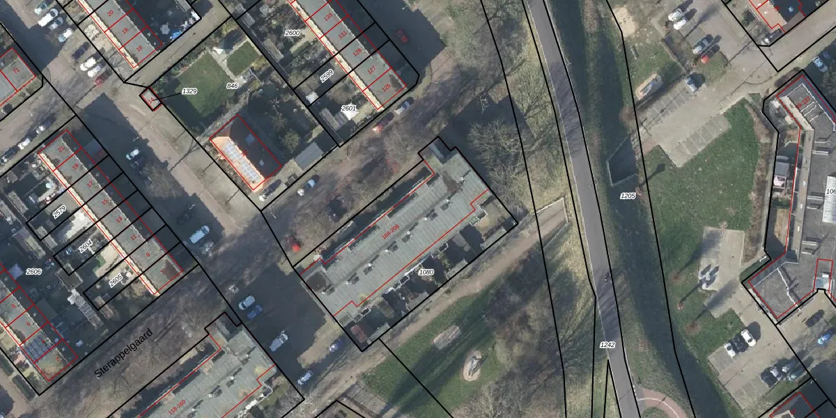 Het perceel waarop Sterappelgaard 186 staat heeft een oppervlakte van 1275 m². Dit is een zeer groot perceel. De perceeloppervlakte wordt geregistreerd door het Kadaster. Gedetailleerde informatie over de maten van dit perceel kunt u vinden in het rapport Kadastrale kaart met maatvoering van Sterappelgaard 186.