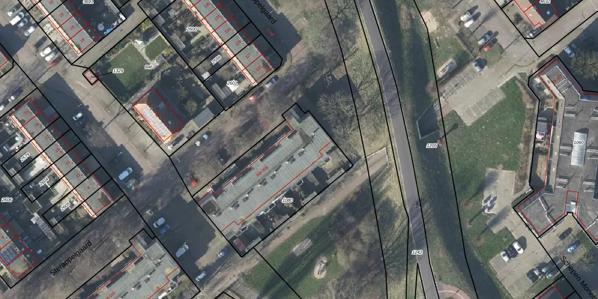 Het perceel waarop Sterappelgaard 204 staat heeft een oppervlakte van 1275 m². Dit is een zeer groot perceel. De perceeloppervlakte wordt geregistreerd door het Kadaster. Gedetailleerde informatie over de maten van dit perceel kunt u vinden in het rapport Kadastrale kaart met maatvoering van Sterappelgaard 204.