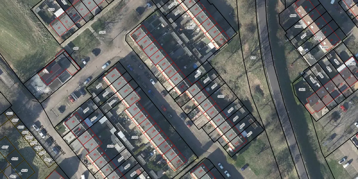 Gebruik de zoekbalk of klik op een perceel voor informatie over de adressen binnen dit perceel.