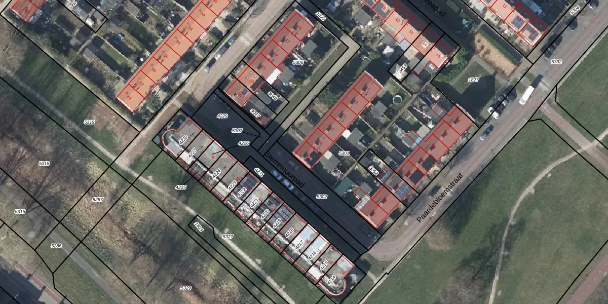Het perceel waarop Sterremuurpad 11 staat heeft een oppervlakte van 2904 m². Dit is een zeer groot perceel. De perceeloppervlakte wordt geregistreerd door het Kadaster. Gedetailleerde informatie over de maten van dit perceel kunt u vinden in het rapport Kadastrale kaart met maatvoering van Sterremuurpad 11.