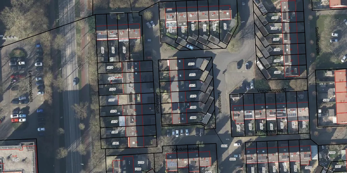 Gebruik de zoekbalk of klik op een perceel voor informatie over de adressen binnen dit perceel.