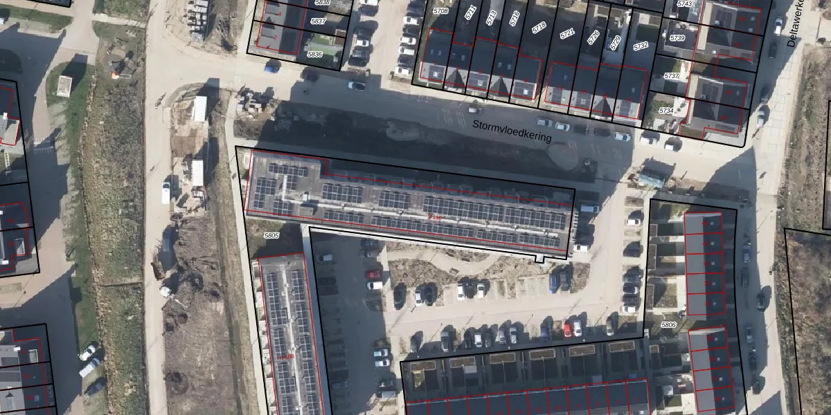 Het perceel waarop Stormvloedkering 14 staat heeft een oppervlakte van 2260 m². Dit is een zeer groot perceel. De perceeloppervlakte wordt geregistreerd door het Kadaster. Gedetailleerde informatie over de maten van dit perceel kunt u vinden in het rapport Kadastrale kaart met maatvoering van Stormvloedkering 14.