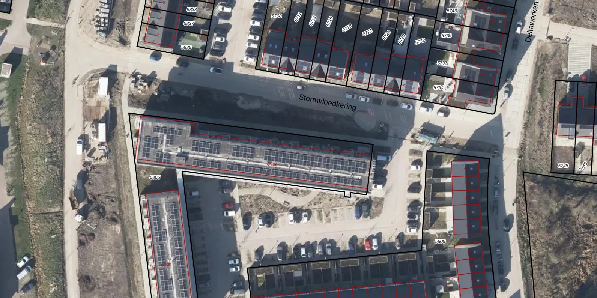 Het perceel waarop Stormvloedkering 90 staat heeft een oppervlakte van 2260 m². Dit is een zeer groot perceel. De perceeloppervlakte wordt geregistreerd door het Kadaster. Gedetailleerde informatie over de maten van dit perceel kunt u vinden in het rapport Kadastrale kaart met maatvoering van Stormvloedkering 90.