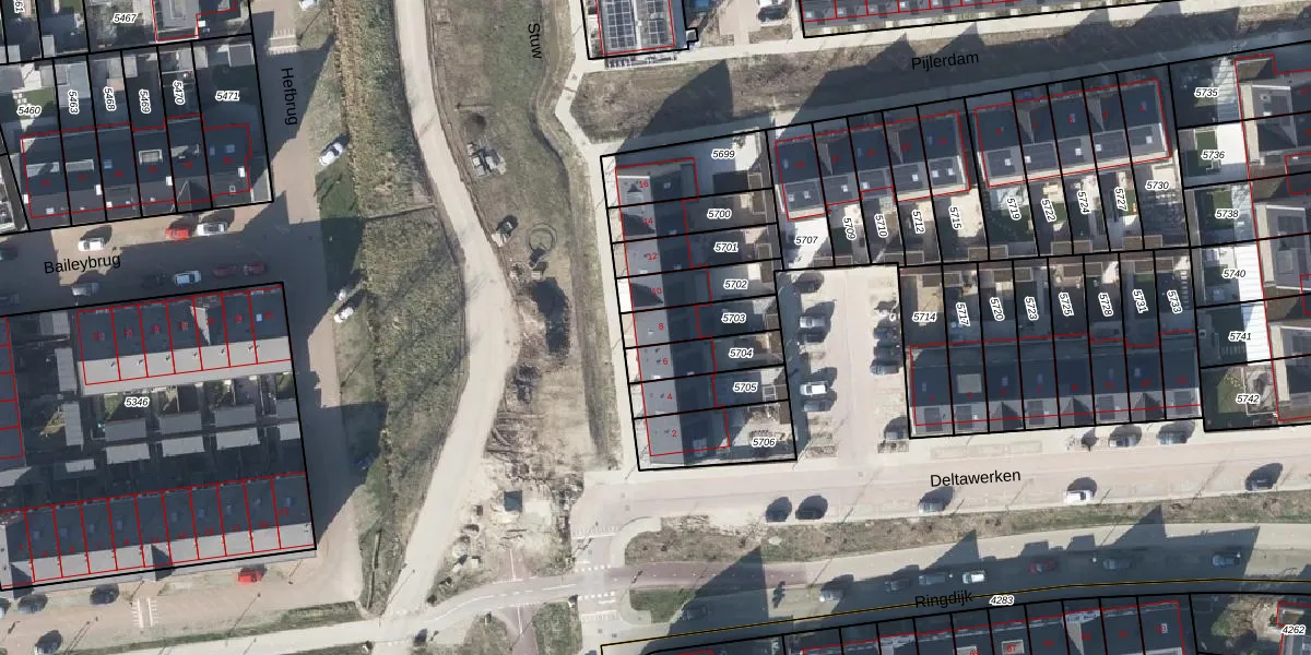 Gebruik de zoekbalk of klik op een perceel voor informatie over de adressen binnen dit perceel.