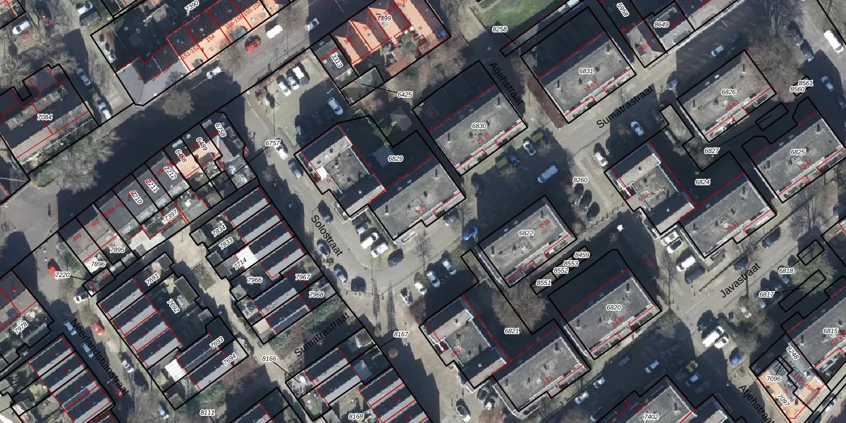 Het perceel waarop Sumatrastraat 15 staat heeft een oppervlakte van 650 m². Dit is een groot perceel. De perceeloppervlakte wordt geregistreerd door het Kadaster. Gedetailleerde informatie over de maten van dit perceel kunt u vinden in het rapport Kadastrale kaart met maatvoering van Sumatrastraat 15.