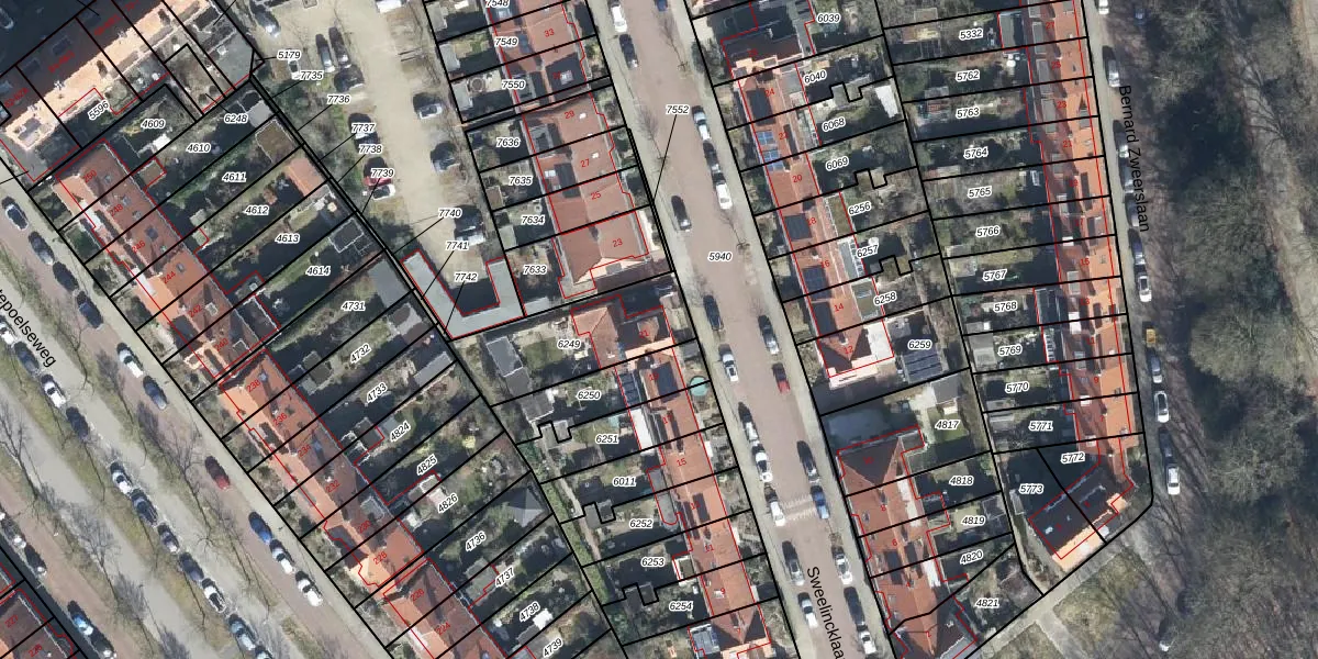 Het perceel waarop Sweelincklaan 21 staat heeft een oppervlakte van 387 m². Dit is een groot perceel. De perceeloppervlakte wordt geregistreerd door het Kadaster. Gedetailleerde informatie over de maten van dit perceel kunt u vinden in het rapport Kadastrale kaart met maatvoering van Sweelincklaan 21.
