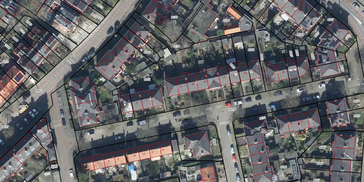 Het perceel waarop Taklaan 11 staat heeft een oppervlakte van 3175 m². Dit is een zeer groot perceel. De perceeloppervlakte wordt geregistreerd door het Kadaster. Gedetailleerde informatie over de maten van dit perceel kunt u vinden in het rapport Kadastrale kaart met maatvoering van Taklaan 11.