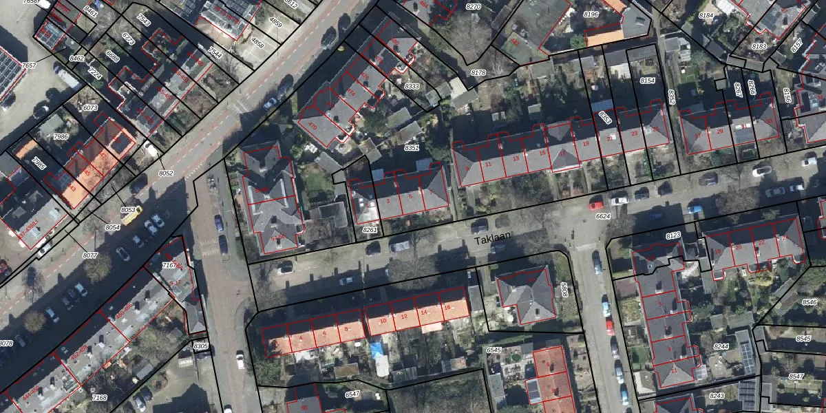 Het perceel waarop Taklaan 5 staat heeft een oppervlakte van 3175 m². Dit is een zeer groot perceel. De perceeloppervlakte wordt geregistreerd door het Kadaster. Gedetailleerde informatie over de maten van dit perceel kunt u vinden in het rapport Kadastrale kaart met maatvoering van Taklaan 5.