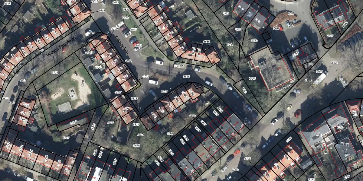 Het perceel waarop Talmaplein 2 staat heeft een oppervlakte van 40 m². Dit is een klein perceel. De perceeloppervlakte wordt geregistreerd door het Kadaster. Gedetailleerde informatie over de maten van dit perceel kunt u vinden in het rapport Kadastrale kaart met maatvoering van Talmaplein 2.