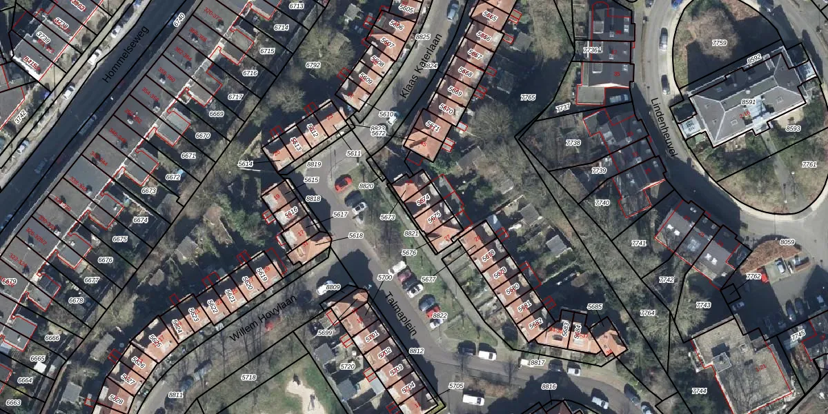 Gebruik de zoekbalk of klik op een perceel voor informatie over de adressen binnen dit perceel.