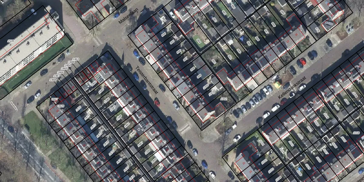 Gebruik de zoekbalk of klik op een perceel voor informatie over de adressen binnen dit perceel.
