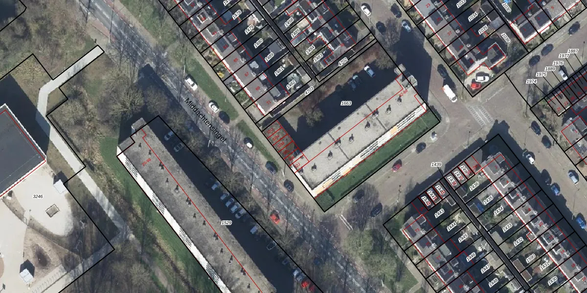 Het perceel waarop Teisterbantstraat 32-L staat heeft een oppervlakte van 1753 m². Dit is een zeer groot perceel. De perceeloppervlakte wordt geregistreerd door het Kadaster. Gedetailleerde informatie over de maten van dit perceel kunt u vinden in het rapport Kadastrale kaart met maatvoering van Teisterbantstraat 32-L.