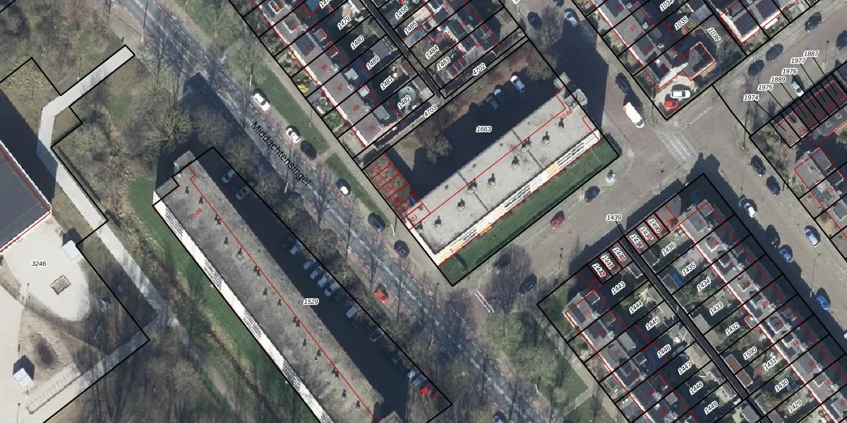 Het perceel waarop Teisterbantstraat 32-J staat heeft een oppervlakte van 1753 m². Dit is een zeer groot perceel. De perceeloppervlakte wordt geregistreerd door het Kadaster. Gedetailleerde informatie over de maten van dit perceel kunt u vinden in het rapport Kadastrale kaart met maatvoering van Teisterbantstraat 32-J.