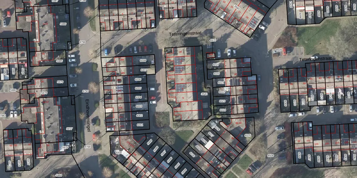 Het perceel waarop Teteringenstraat 8 staat heeft een oppervlakte van 900 m². Dit is een groot perceel. De perceeloppervlakte wordt geregistreerd door het Kadaster. Gedetailleerde informatie over de maten van dit perceel kunt u vinden in het rapport Kadastrale kaart met maatvoering van Teteringenstraat 8.