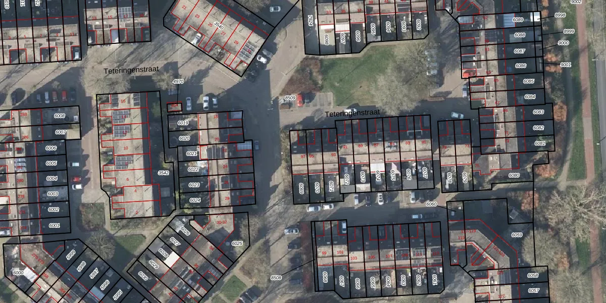 Teteringenstraat 97 is gelegen op kadastraal perceel AHM03AC6069. Deze kadastrale aanduiding is uniek en wordt gebruikt door het Kadaster om eigendomsrechten en andere zakelijke rechten vast te leggen. Het perceel maakt onderdeel uit van de kadastrale gemeente Arnhem.