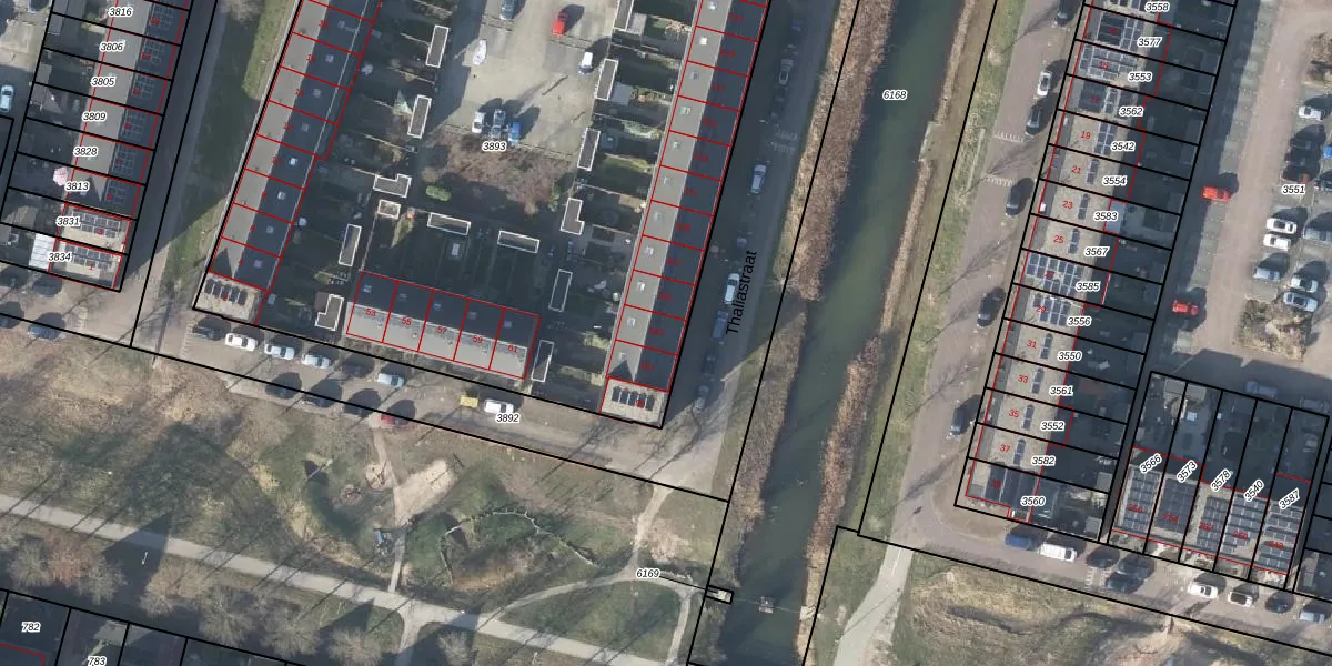 Het perceel waarop Thaliastraat 103 staat heeft een oppervlakte van 4930 m². Dit is een zeer groot perceel. De perceeloppervlakte wordt geregistreerd door het Kadaster. Gedetailleerde informatie over de maten van dit perceel kunt u vinden in het rapport Kadastrale kaart met maatvoering van Thaliastraat 103.