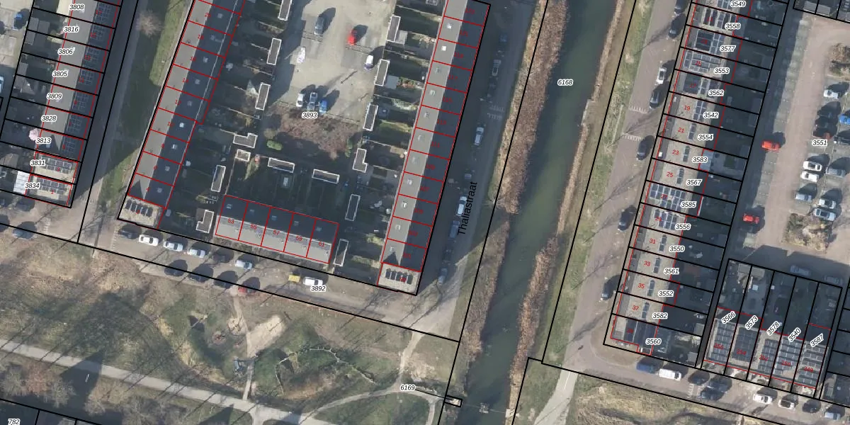 Het perceel waarop Thaliastraat 105 staat heeft een oppervlakte van 4930 m². Dit is een zeer groot perceel. De perceeloppervlakte wordt geregistreerd door het Kadaster. Gedetailleerde informatie over de maten van dit perceel kunt u vinden in het rapport Kadastrale kaart met maatvoering van Thaliastraat 105.
