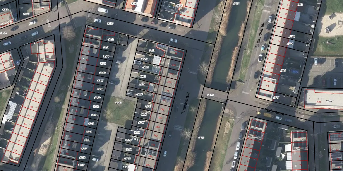 Thaliastraat 175 is gelegen op kadastraal perceel AHM05AF3022. Deze kadastrale aanduiding is uniek en wordt gebruikt door het Kadaster om eigendomsrechten en andere zakelijke rechten vast te leggen. Het perceel maakt onderdeel uit van de kadastrale gemeente Arnhem.