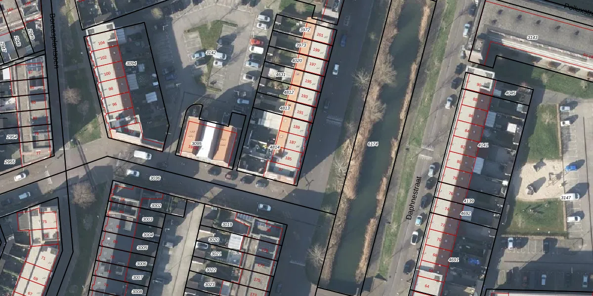 Het perceel waarop Thaliastraat 187 staat heeft een oppervlakte van 467 m². Dit is een groot perceel. De perceeloppervlakte wordt geregistreerd door het Kadaster. Gedetailleerde informatie over de maten van dit perceel kunt u vinden in het rapport Kadastrale kaart met maatvoering van Thaliastraat 187.