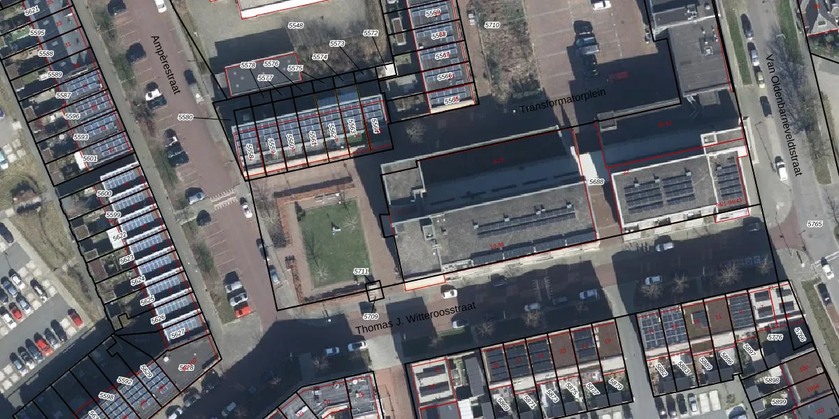 Het perceel waarop Thomas J. Witteroosstraat 20 staat heeft een oppervlakte van 3540 m². Dit is een zeer groot perceel. De perceeloppervlakte wordt geregistreerd door het Kadaster. Gedetailleerde informatie over de maten van dit perceel kunt u vinden in het rapport Kadastrale kaart met maatvoering van Thomas J. Witteroosstraat 20.