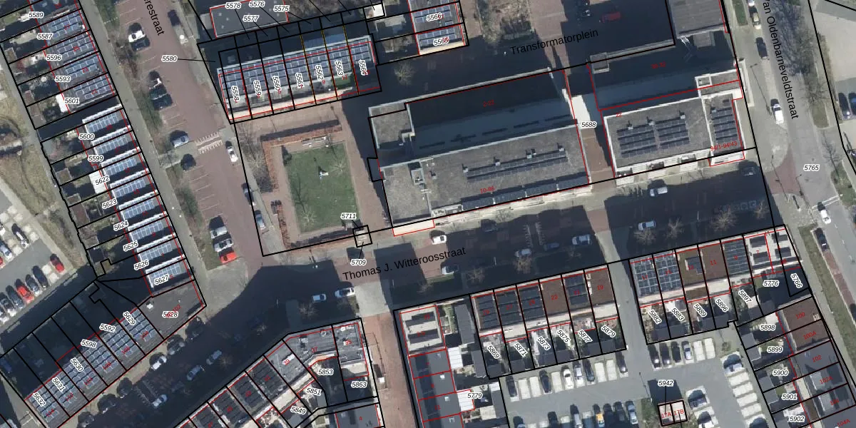 Het perceel waarop Thomas J. Witteroosstraat 32 staat heeft een oppervlakte van 3540 m². Dit is een zeer groot perceel. De perceeloppervlakte wordt geregistreerd door het Kadaster. Gedetailleerde informatie over de maten van dit perceel kunt u vinden in het rapport Kadastrale kaart met maatvoering van Thomas J. Witteroosstraat 32.