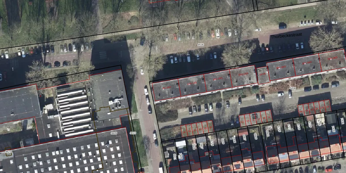 Het perceel waarop Thorbeckestraat 10-2 staat heeft een oppervlakte van 6394 m². Dit is een zeer groot perceel. De perceeloppervlakte wordt geregistreerd door het Kadaster. Gedetailleerde informatie over de maten van dit perceel kunt u vinden in het rapport Kadastrale kaart met maatvoering van Thorbeckestraat 10-2.