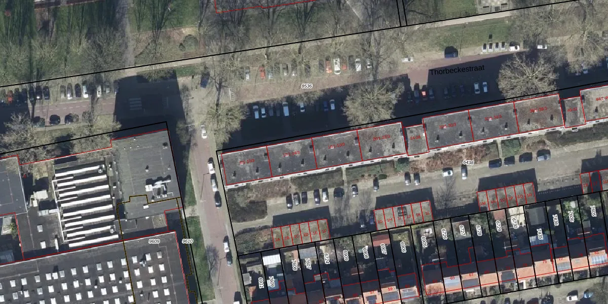 Het perceel waarop Thorbeckestraat 14-2 staat heeft een oppervlakte van 6394 m². Dit is een zeer groot perceel. De perceeloppervlakte wordt geregistreerd door het Kadaster. Gedetailleerde informatie over de maten van dit perceel kunt u vinden in het rapport Kadastrale kaart met maatvoering van Thorbeckestraat 14-2.