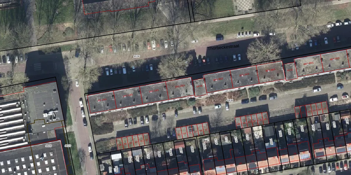 Het perceel waarop Thorbeckestraat 20-2 staat heeft een oppervlakte van 6394 m². Dit is een zeer groot perceel. De perceeloppervlakte wordt geregistreerd door het Kadaster. Gedetailleerde informatie over de maten van dit perceel kunt u vinden in het rapport Kadastrale kaart met maatvoering van Thorbeckestraat 20-2.