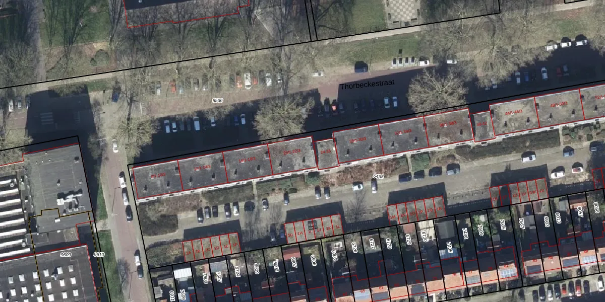Het perceel waarop Thorbeckestraat 22-2 staat heeft een oppervlakte van 6394 m². Dit is een zeer groot perceel. De perceeloppervlakte wordt geregistreerd door het Kadaster. Gedetailleerde informatie over de maten van dit perceel kunt u vinden in het rapport Kadastrale kaart met maatvoering van Thorbeckestraat 22-2.