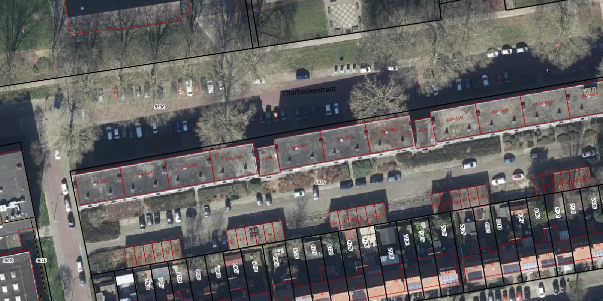 Het perceel waarop Thorbeckestraat 28-3 staat heeft een oppervlakte van 6394 m². Dit is een zeer groot perceel. De perceeloppervlakte wordt geregistreerd door het Kadaster. Gedetailleerde informatie over de maten van dit perceel kunt u vinden in het rapport Kadastrale kaart met maatvoering van Thorbeckestraat 28-3.