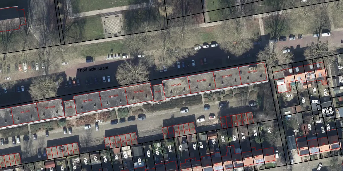 Het perceel waarop Thorbeckestraat 44-2 staat heeft een oppervlakte van 6394 m². Dit is een zeer groot perceel. De perceeloppervlakte wordt geregistreerd door het Kadaster. Gedetailleerde informatie over de maten van dit perceel kunt u vinden in het rapport Kadastrale kaart met maatvoering van Thorbeckestraat 44-2.