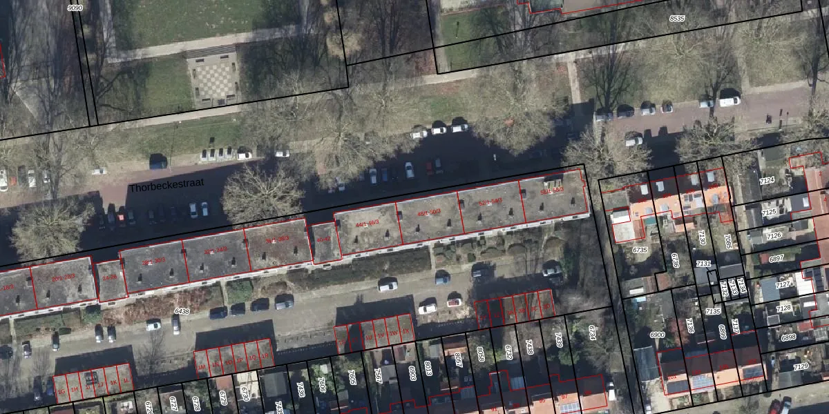 Het perceel waarop Thorbeckestraat 48-1 staat heeft een oppervlakte van 6394 m². Dit is een zeer groot perceel. De perceeloppervlakte wordt geregistreerd door het Kadaster. Gedetailleerde informatie over de maten van dit perceel kunt u vinden in het rapport Kadastrale kaart met maatvoering van Thorbeckestraat 48-1.