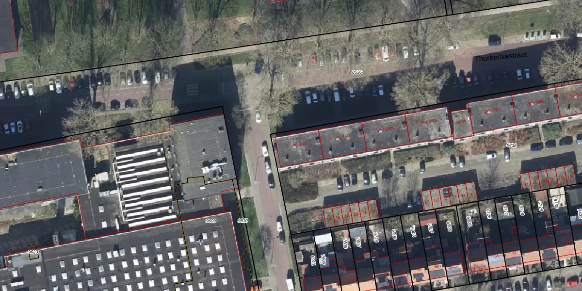 Het perceel waarop Thorbeckestraat 8-2 staat heeft een oppervlakte van 6394 m². Dit is een zeer groot perceel. De perceeloppervlakte wordt geregistreerd door het Kadaster. Gedetailleerde informatie over de maten van dit perceel kunt u vinden in het rapport Kadastrale kaart met maatvoering van Thorbeckestraat 8-2.