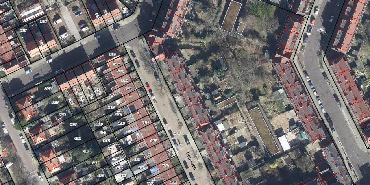 Het perceel waarop Tiendweg 38 staat heeft een oppervlakte van 9640 m². Dit is een zeer groot perceel. De perceeloppervlakte wordt geregistreerd door het Kadaster. Gedetailleerde informatie over de maten van dit perceel kunt u vinden in het rapport Kadastrale kaart met maatvoering van Tiendweg 38.