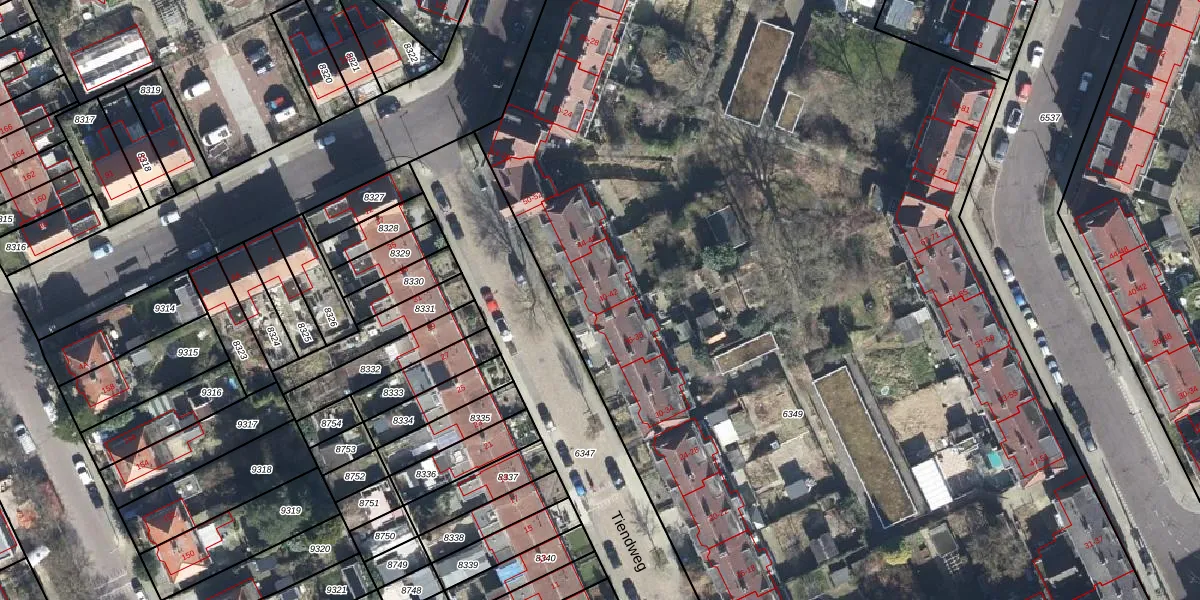 Het perceel waarop Tiendweg 40 staat heeft een oppervlakte van 9640 m². Dit is een zeer groot perceel. De perceeloppervlakte wordt geregistreerd door het Kadaster. Gedetailleerde informatie over de maten van dit perceel kunt u vinden in het rapport Kadastrale kaart met maatvoering van Tiendweg 40.