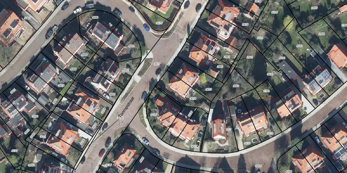 Het perceel waarop Tooropstraat 21 staat heeft een oppervlakte van 328 m². Dit is een groot perceel. De perceeloppervlakte wordt geregistreerd door het Kadaster. Gedetailleerde informatie over de maten van dit perceel kunt u vinden in het rapport Kadastrale kaart met maatvoering van Tooropstraat 21.